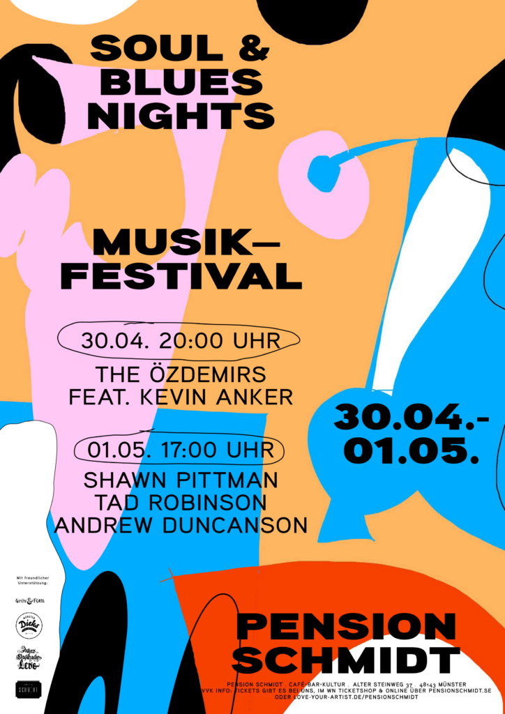 Don’t sleep on Andrew Duncanson. He just released an incredibly soulful album with tongue-in-cheek-lyrics that are speaking straight from life. We were lucky to have him and Tad Robinson join us for a little mini-festival at our favourite local wateringhole „Pension Schmidt„. Many thanks to Thommy and his wonderful crew for having us. After that we all hopped into the Sprinter and spent a wonderful weekend seeing 3000 friends and fans at what I like to call the annual Blues-Conference – the wonderful „Moulin Blues Festival“ in Ospel, NL.